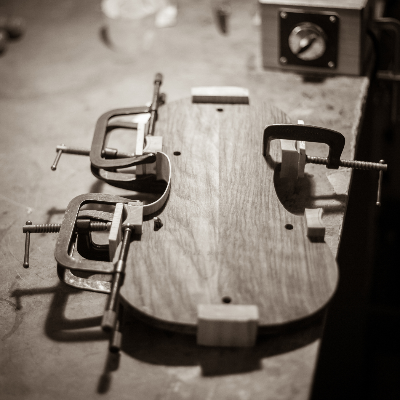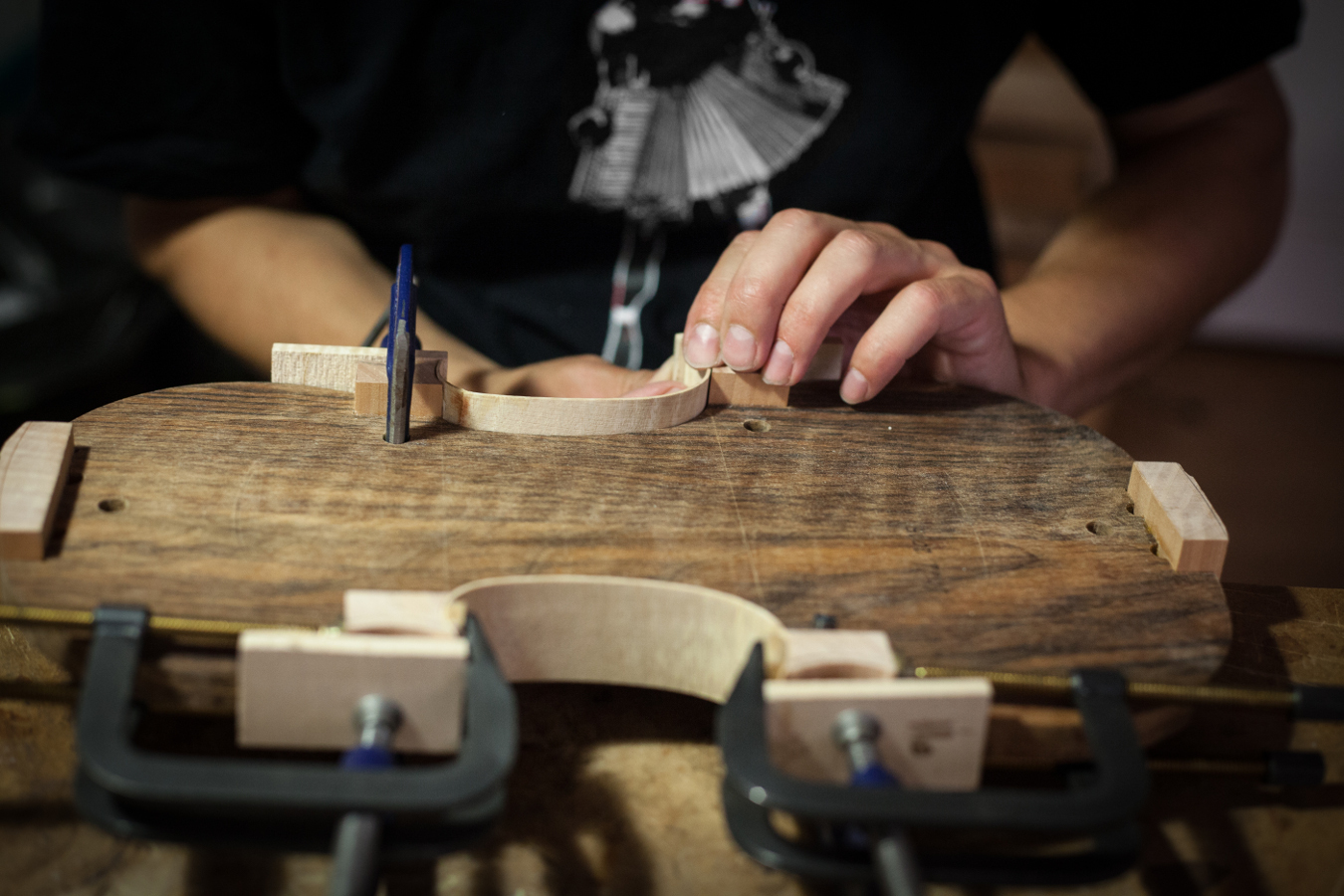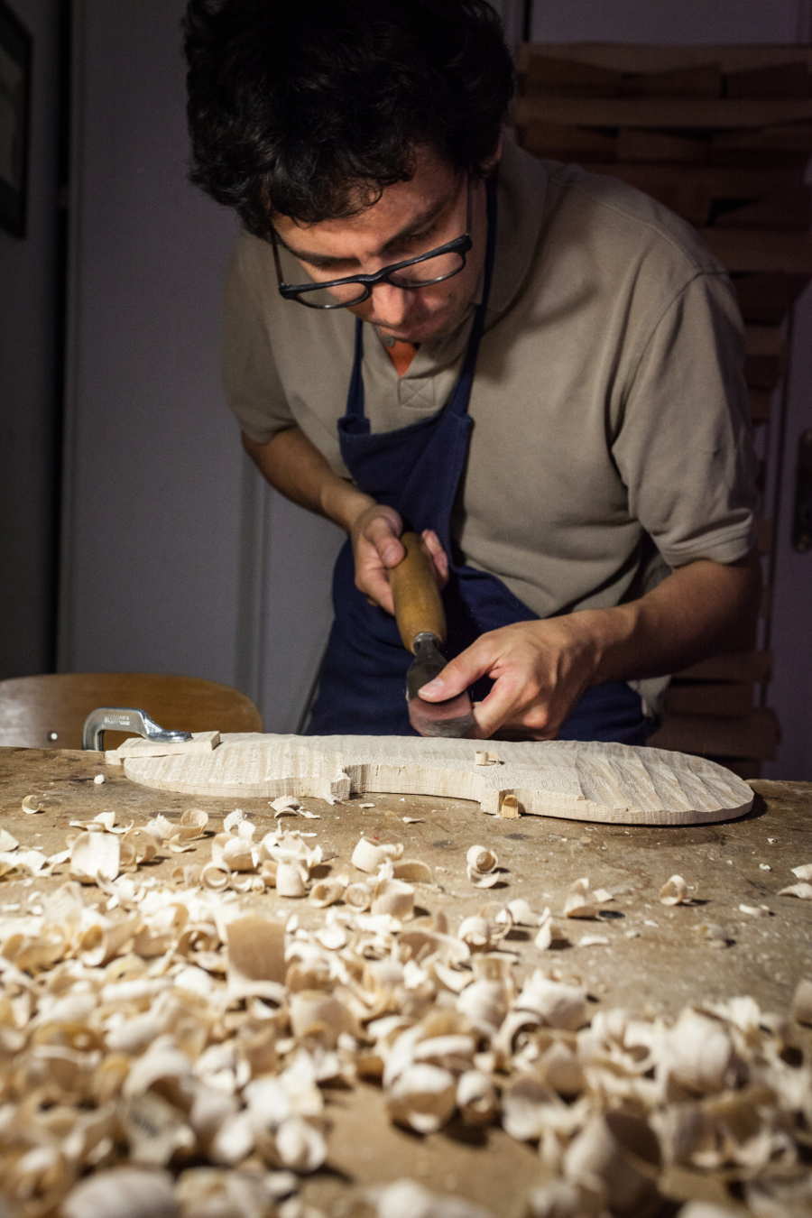 Son rêve ? Etre un collègue luthier d’Amati, de Guarneri ou de Stradivari. Faute d’être né au XVIIe ou au XVIIIe siècle en Italie, mais au XXe siècle (1980) en Gironde, Antoine Lescombe inscrit son travail dans cette lignée exigeante, ce qui passe aussi par un travail de recherche actif : visite de musées, étude d'instruments originaux, des traces de coups d'outils, mais aussi étude des instruments utilisés actuellement par les musiciens, et échanges incessants avec les artistes.